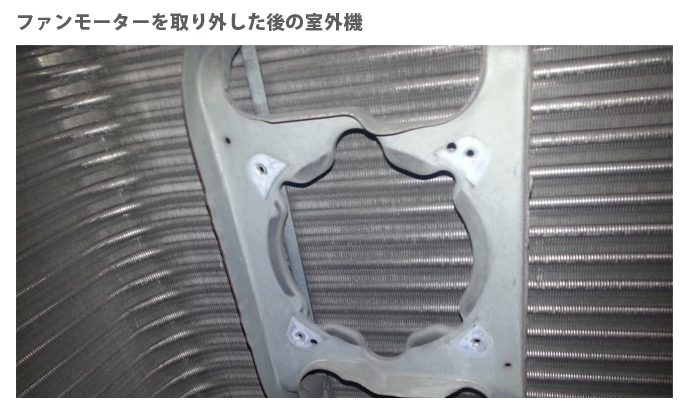 ファンモーターが2個付いている室外機では、そのうちの1台が異常停止(ロック)していて